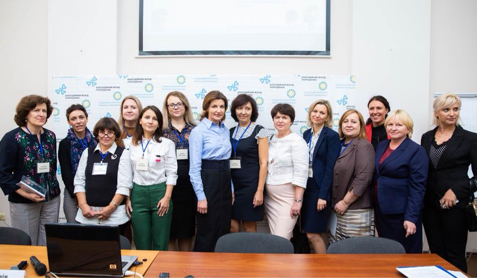 Maryna Poroshenko, the first lady of Ukraine, recently opened a four-day Train the Trainer session on Inclusive Education. The program was initiated by the Poroshenko Foundation, which is headed by Mrs. Poroshenko, and aims to improve social, cultural and medical structures in the country. The Poroshenko Foundation commissioned the Ukrainian Step by Step Foundation (USSF) and the International Renaissance Foundation (IRF) to organize the forum and provide the subsequent training.