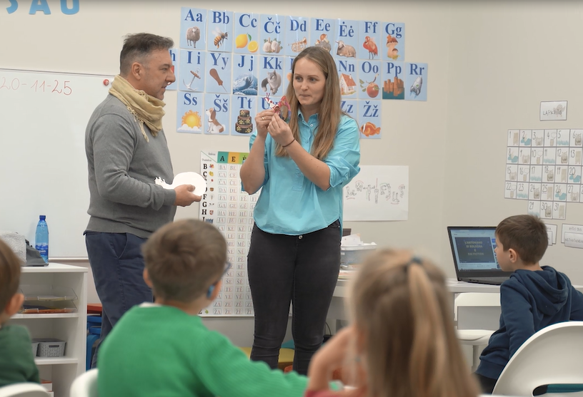 Photos: Interactive Italian language lesson with two parents. Roberta Plekaviciene. Aukštelkės mokykla-daugiafunkcis centras.