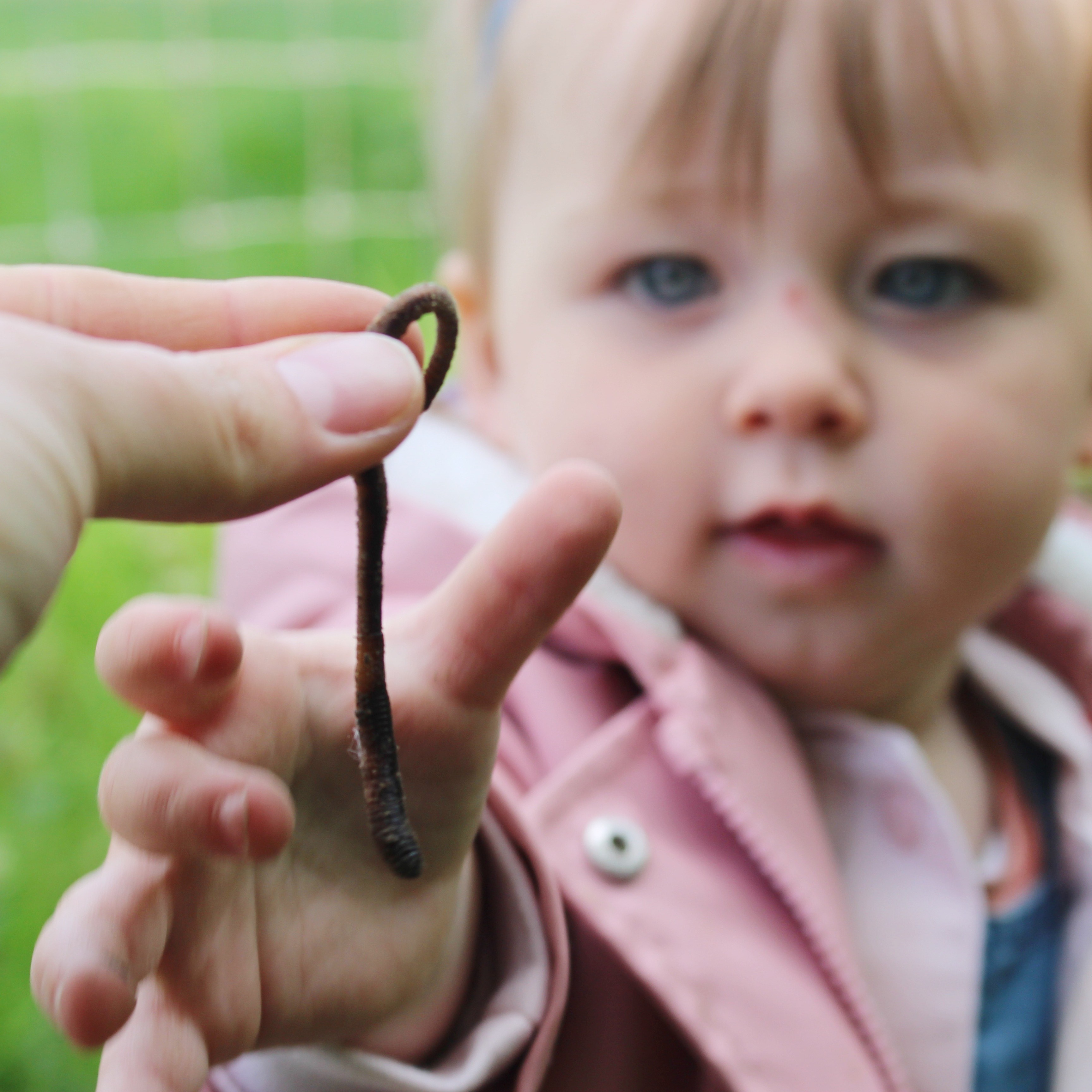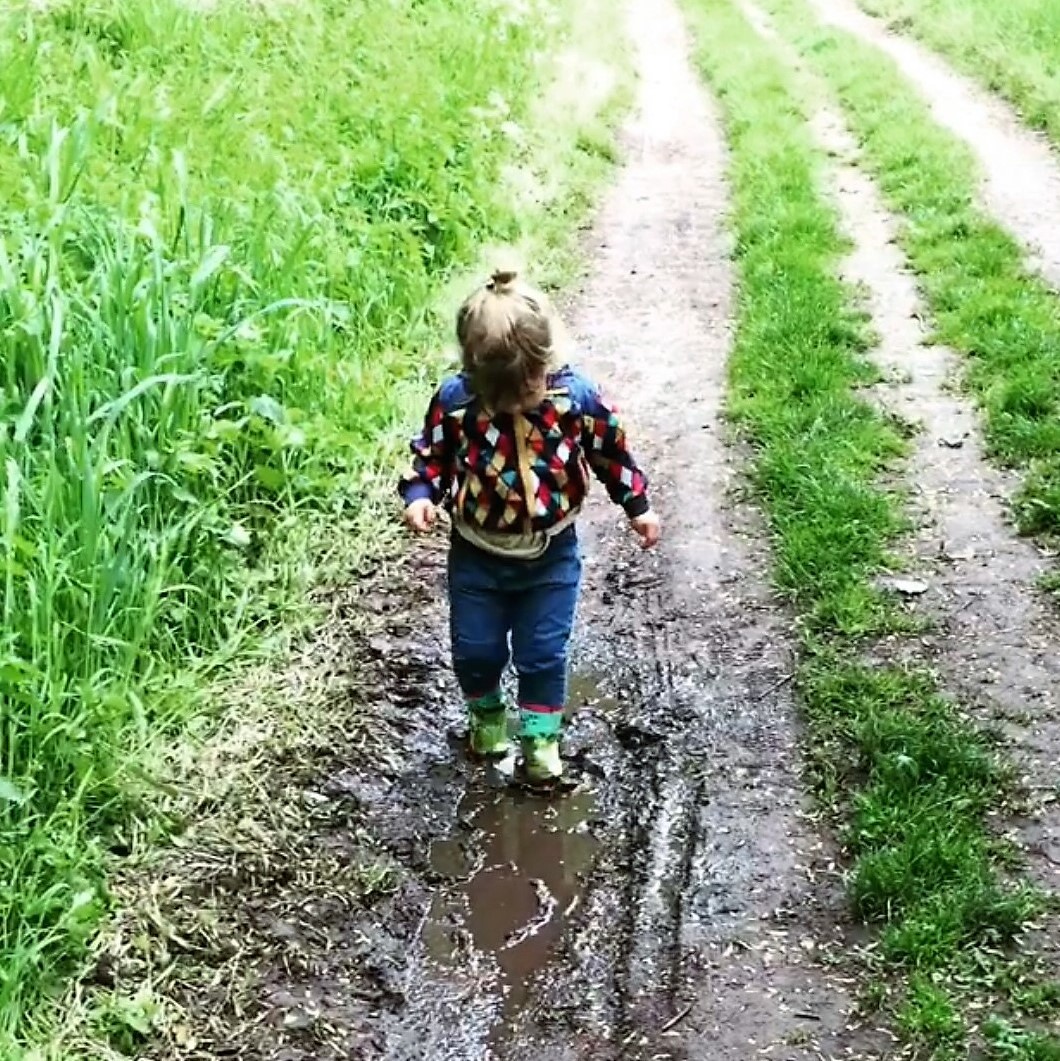 ‘Go for a walk, enjoy the outdoors, and get some oxygen’: all very mature arguments. Children do not consciously choose the movement or oxygen, they choose the adventure, the small animals that live under stones and the bark of trees, the fish and frogs in the pond. Children explore their limits by jumping in puddles or just daring to climb a branch higher in the tree. Millie (below in the picture) wants to grab the worm, but will she gently grasp the animal? If she lets the worm crawl over her hand and experiences the itch, will she give the worm freedom again? Because we also teach that to our children: taking care of everything and everyone.